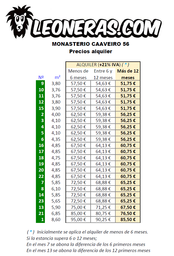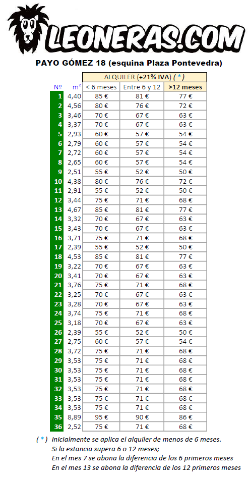 Planos, Precios y Calidades Zona Plaza Pontevedra: C/ Payo Gomez 18 15004, A Coruña Planos Ver Precios Memoria de Calidades Zona Ventorrillo: C/ Monasterio Caaveiro 5615010, A Coruña Planos Ver Precios Memoria de Calidades Zona Centro: C/ Varela Silvari 16-1815001, A Coruña Planos Ver Precios Memoria de Calidades LLAMAR AHoRA Mucho más que un lugar donde dejar tus trastos leoneras@leoneras.com Llámanos sin compromiso 629822600 Envíanos un WhatsApp Aviso Legal | Política de Privacidad | Cookies LEoNERAS © CoPYRIGHT 2021